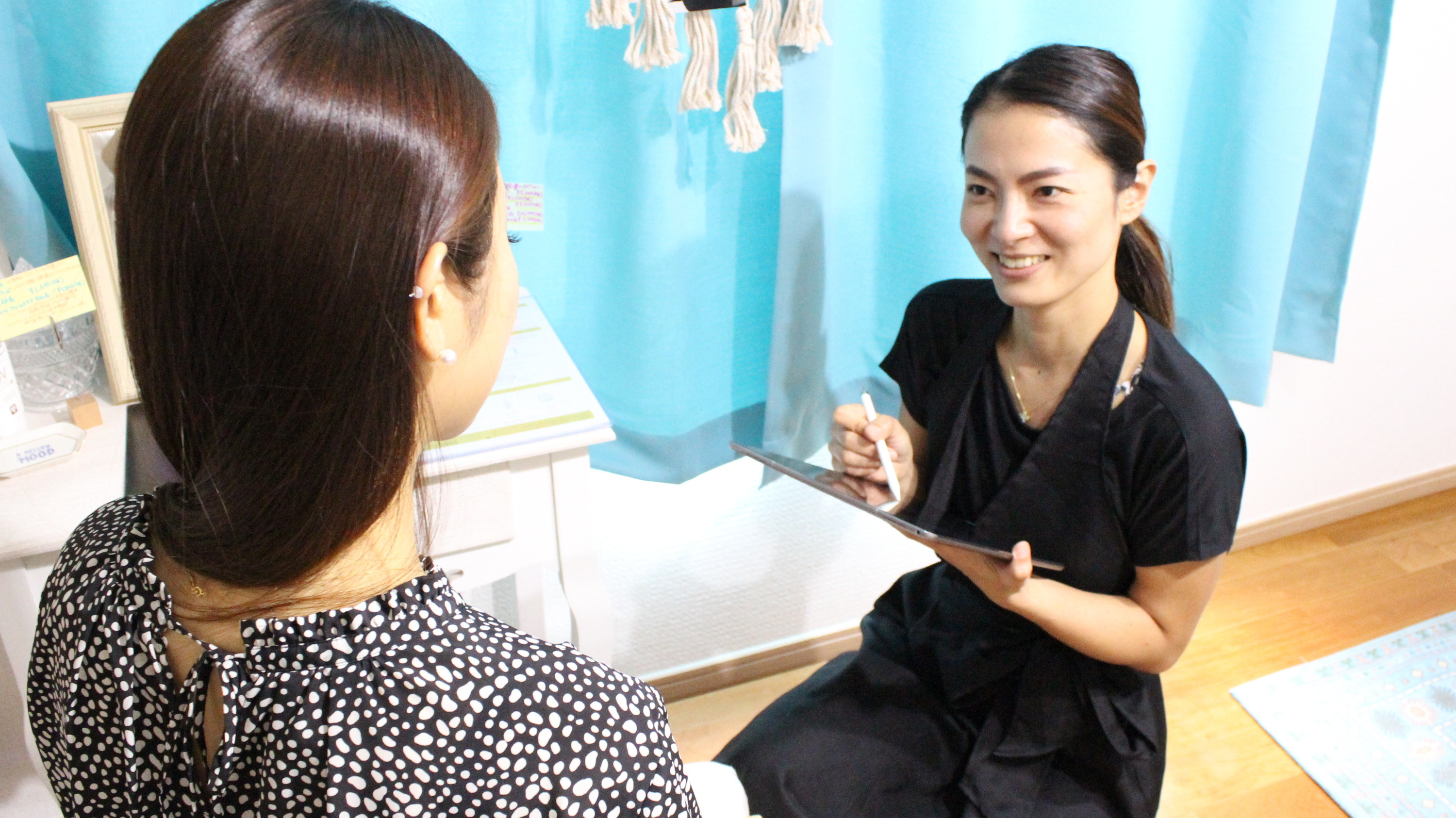 お客様の悩み、目的をお伺いして重点的に行うポイントとメニューを決めていきます。